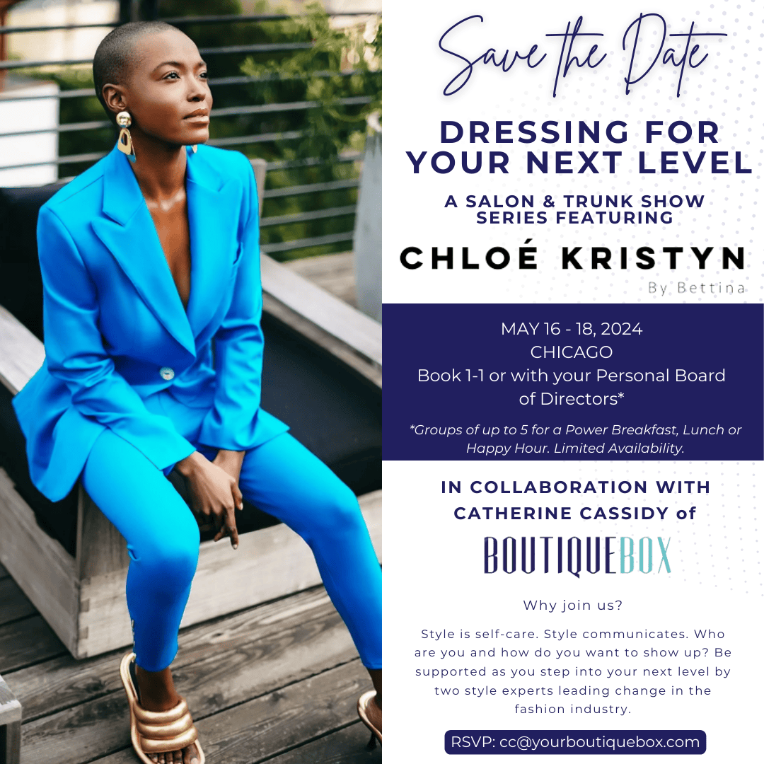Bettina Benson, the founder and designer of Atlanta-based brand, Chloe Kristyn, will be in Chicago for this exclusive opportunity to discover your new favorite pieces and meet the designer creating them especially for YOU.